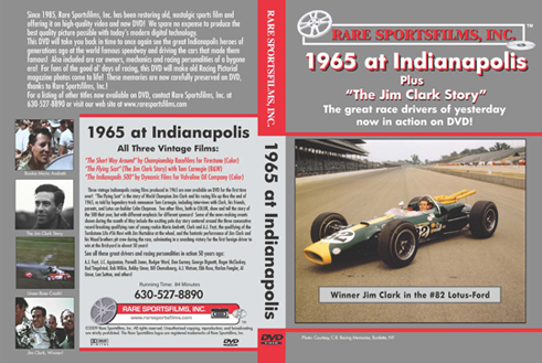 “The Short Way Around”, “The Flying Scot” (The Jim Clark Story) and the “1965 Indianapolis 500” are three vintage films about the 1965 Indianapolis 500 and all three are now available on a new 84-minute DVD from “Rare Sportsfilms, Inc”. These films make an appropriate trio, as Jim Clark won the 1965 race, and “The Flying Scot” is the story of his racing life up through 1965. These rare films have been carefully and beautifully restored by “Rare Sportsfilms Inc.”, maker of the very finest quality nostalgic racing DVDs!