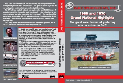On this DVD are color highlights of a dozen different races from 1969 and 1970, including a segment on 1970 NASCAR Champion Bobby Isaac, plus a special bonus: rare footage of the first NASCAR win for a Plymouth Superbird – Ramo Stott’s victory in the 1970 ARCA 300 at Daytona! Here’s what you’ll see on this new 1 hour, 16 minute DVD: