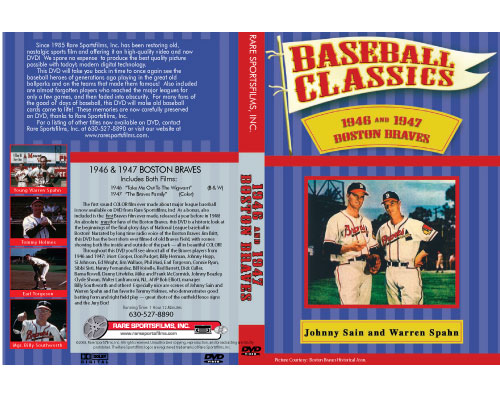 “The Braves Family” is the best film ever made for great shots of old Braves Field, with many scenes showing the inside and outside of the park – all in beautiful COLOR! It was also the first film ever restored and presented to the public by Rare Sportsfilms, Inc. (November, 1985)! Now, we are re-releasing the film on DVD for better color and picture sharpness than ever before! All shown in this DVD are owners Guido Rugo, Joe Maney and Lou Perini) and front office personnel Frank Leary, Joe Cairnes, G.M. John Quinn, traveling secretary “Duffy” Lewis, ticket director B.J. Romeo, P.R. Director Billy Sullivan, Charlie Sands, John Mullen, Harry Jenkins, Al Oliver, Press Steward Tommy McCarthy, Shorty Young, scout Jeff Jones, the Braves Field Troubadours, longtime Braves fan Lolly Hopkins and of course, manager Billy Southworth and coaches Jake Flowers, Johnny Cooney, Ernie White and Bob Keely. Also included are scenes from Opening Day and other promotional days, such as Fan Appreciation Day when the club honored the season’s 1,000,000th fan by giving away new Packard and Ford automobiles!