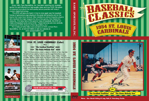Here's a 1950's St. Louis Cardinal tripleheader that Redbird diehards will find fascinating! Three vintage Cardinal films, "Let's Train With The Cardinals", "The Cardinal Tradition" and "The Game Nobody Saw"are now all available on one DVD from Rare Sportsfilms, Inc!